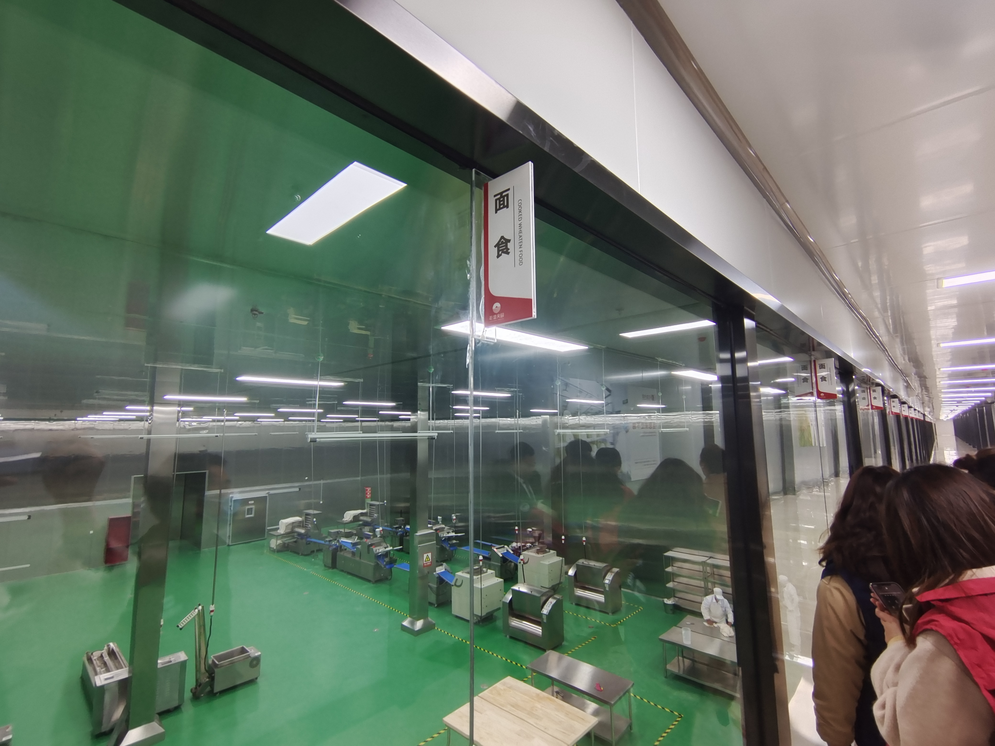 在位于川匯區(qū)女?huà)z路88號(hào)的乾盛央廚,直播團(tuán)隊(duì)用圖文形式實(shí)時(shí)現(xiàn)場(chǎng)呈現(xiàn)午餐制作整體環(huán)境。隔著參觀走廊上的玻璃,全線(xiàn)開(kāi)機(jī)一小時(shí)能出12000個(gè)無(wú)添加饅頭的面食車(chē)間,從生米到熟飯全自動(dòng)機(jī)械化制作的米飯車(chē)間,全程紫外線(xiàn)消毒、菜品全清真的烹飪車(chē)間,流水線(xiàn)上分盒分箱并與物流區(qū)無(wú)縫銜接的分餐生產(chǎn)線(xiàn),這些在主播與乾盛央廚工作人員的一問(wèn)一答中呈現(xiàn)在觀看直播的家長(zhǎng)朋友們面前。“我們不僅做飯,餐具也由我們提供,餐具是PPP材料,耐高溫,安全無(wú)毒,筷子、勺子是不銹鋼的?!惫ぷ魅藛T介紹。