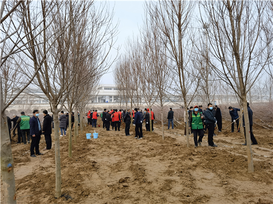 3月12日是全國第43個(gè)植樹節(jié),我市社會各界群眾來到高鐵片區(qū)義務(wù)植樹基地開展義務(wù)植樹活動,為森林周口建設(shè)增綠添彩。栽下棵棵樹苗,留下一片新綠,大家一起扶苗、培土、圍堰、澆灌,現(xiàn)場呈現(xiàn)一派熱火朝天的繁忙景象。②7