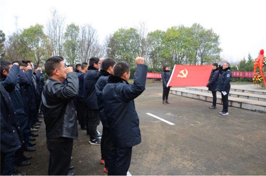 在鮮艷的黨旗下,全體黨員莊嚴(yán)舉起右手,重溫入黨誓詞。隨后,全體黨員繞烈士紀(jì)念碑緩緩而行,瞻仰先烈,觀看烈士墓志銘。