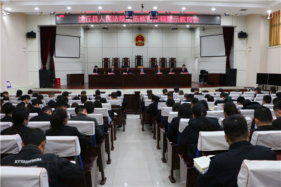 為扎實(shí)開(kāi)展隊(duì)伍教育整頓,深入推進(jìn)學(xué)習(xí)教育環(huán)節(jié)中的警示教育環(huán)節(jié),促使全院干警知敬畏、存戒懼、守底線。3月22日,沈丘縣人民法院召開(kāi)警示教育大會(huì)??h紀(jì)委監(jiān)委派駐紀(jì)檢監(jiān)察組組長(zhǎng)、黨組副書(shū)記王宇根據(jù)身邊的案例為大家做了一場(chǎng)警示教育報(bào)告。