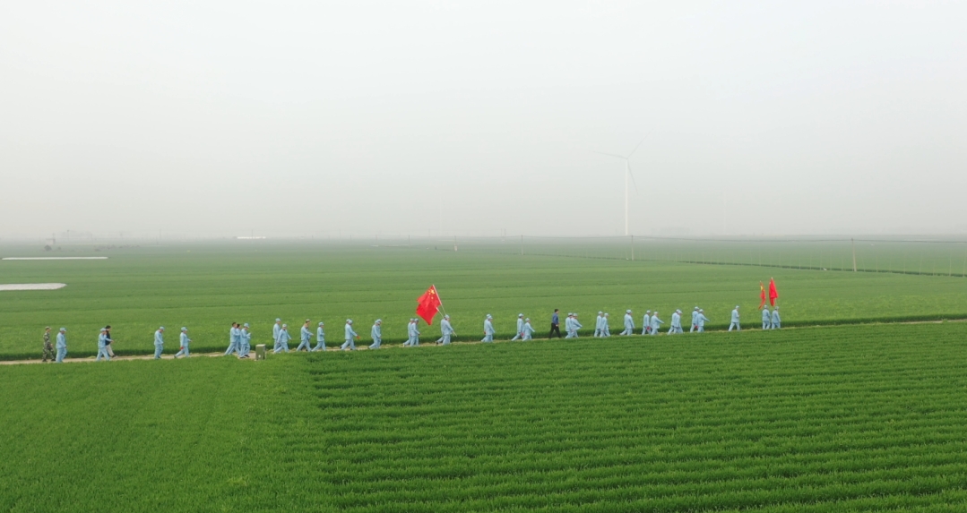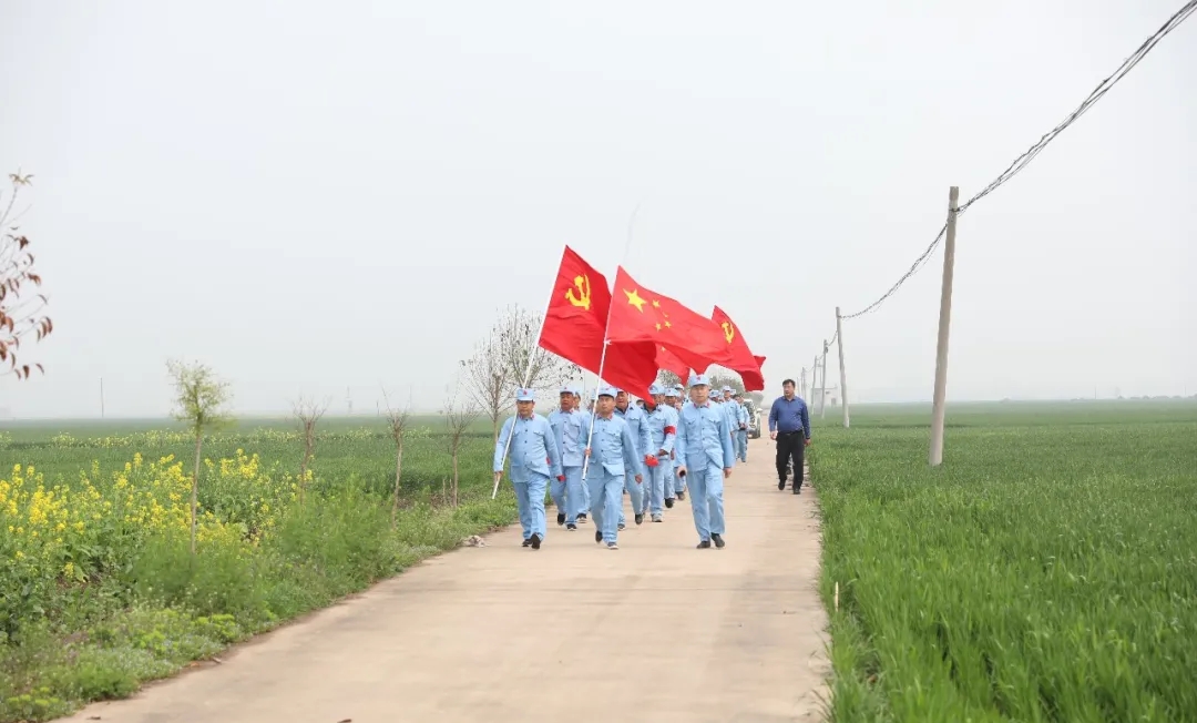 “我一定要跟著大部隊(duì)走,絕不掉隊(duì),不給紅軍前輩抹黑?!眲倓傋鐾晔中g(shù)的七一村黨支部書記何治安斬釘截鐵地說。在七二村,熱情好客的七里倉群眾不僅給“大軍”送來了西紅柿、黃瓜、茶雞蛋、香蕉等補(bǔ)給品,還表演了“祖國你好”、“美麗生活”等扇子舞,再現(xiàn)了當(dāng)年紅軍到哪都受人民群眾擁戴的情景,同志們的疲憊一下子煙消霧散.....按照拓展行程安排,在盆李村的“周口市第一個(gè)農(nóng)村黨支部舊址”,同志們進(jìn)行了參觀瞻仰和重溫入黨誓詞等活動,回顧了歷史,緬懷了先烈,震撼了心靈,錘煉了黨性。
