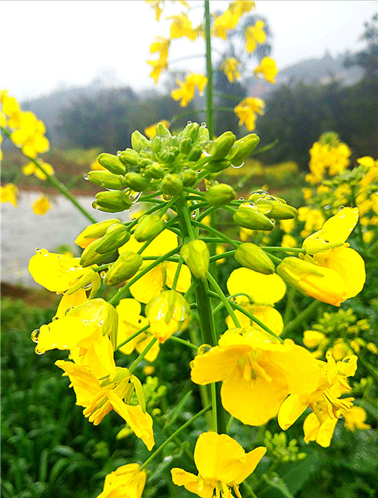 沙潁河岸邊的油菜花被細(xì)雨潤澤后格外精神,就像“加油”了一般。俗話說春雨貴如油。近日,我市下起了綿綿春雨,三川大地上比比皆是的油菜花釋放出勃勃生機。據(jù)了解,油菜花的花語就是“加油”,如此巧合,令人感嘆。①5