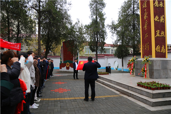 鄲城縣自然資源局黨員干部在紀(jì)念碑前重溫入黨誓詞。