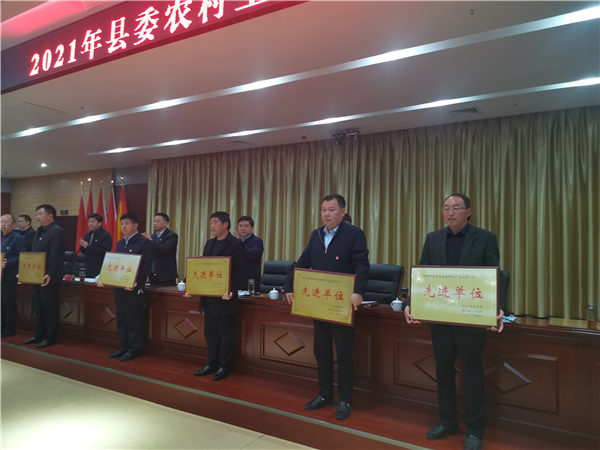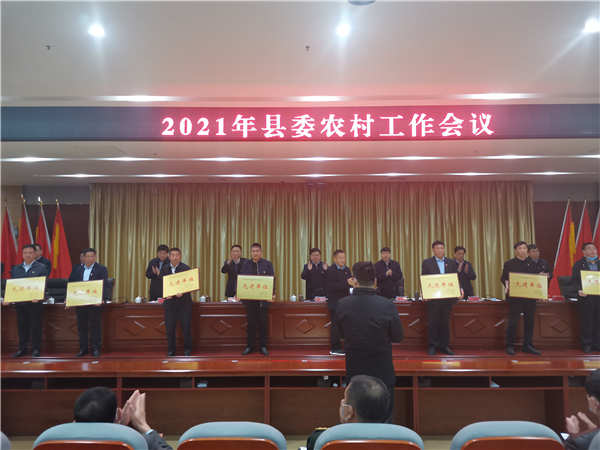 郭俊濤就貫徹落實(shí)會(huì)議精神及下一步農(nóng)村工作進(jìn)行具體安排部署??h委副書記許四軍宣讀了縣委、縣政府關(guān)于表揚(yáng)2020年度農(nóng)業(yè)農(nóng)村工作先進(jìn)單位、先進(jìn)個(gè)人的通報(bào)。會(huì)議還對受表彰的先進(jìn)單位代表進(jìn)行了頒獎(jiǎng)。