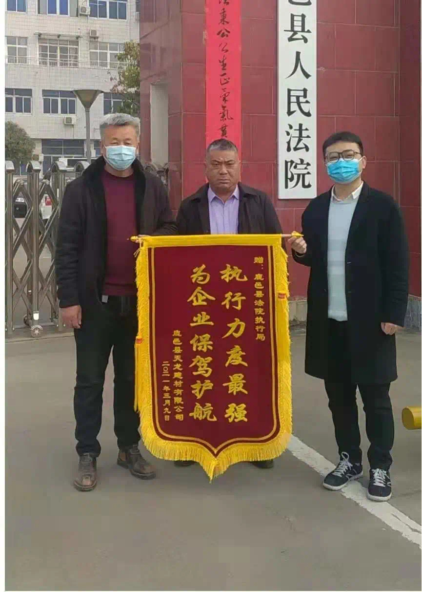 鹿邑縣某建材公司與胡某商砼買賣合同一案,雙方簽訂了價值23萬多元的商砼買賣合同,但是胡某沒有按照合同約定付款。3月2日,鹿邑縣人民法院執(zhí)行立案系統(tǒng)受理后,執(zhí)行法官當天立案、當天發(fā)起查控措施、當天凍結(jié)被執(zhí)行人財產(chǎn),當天就執(zhí)結(jié)了案件,贏得了涉案企業(yè)贊譽,并為執(zhí)行法官送來了一面書有“執(zhí)行力度最強 為企業(yè)保駕護航”的錦旗表示感謝。
