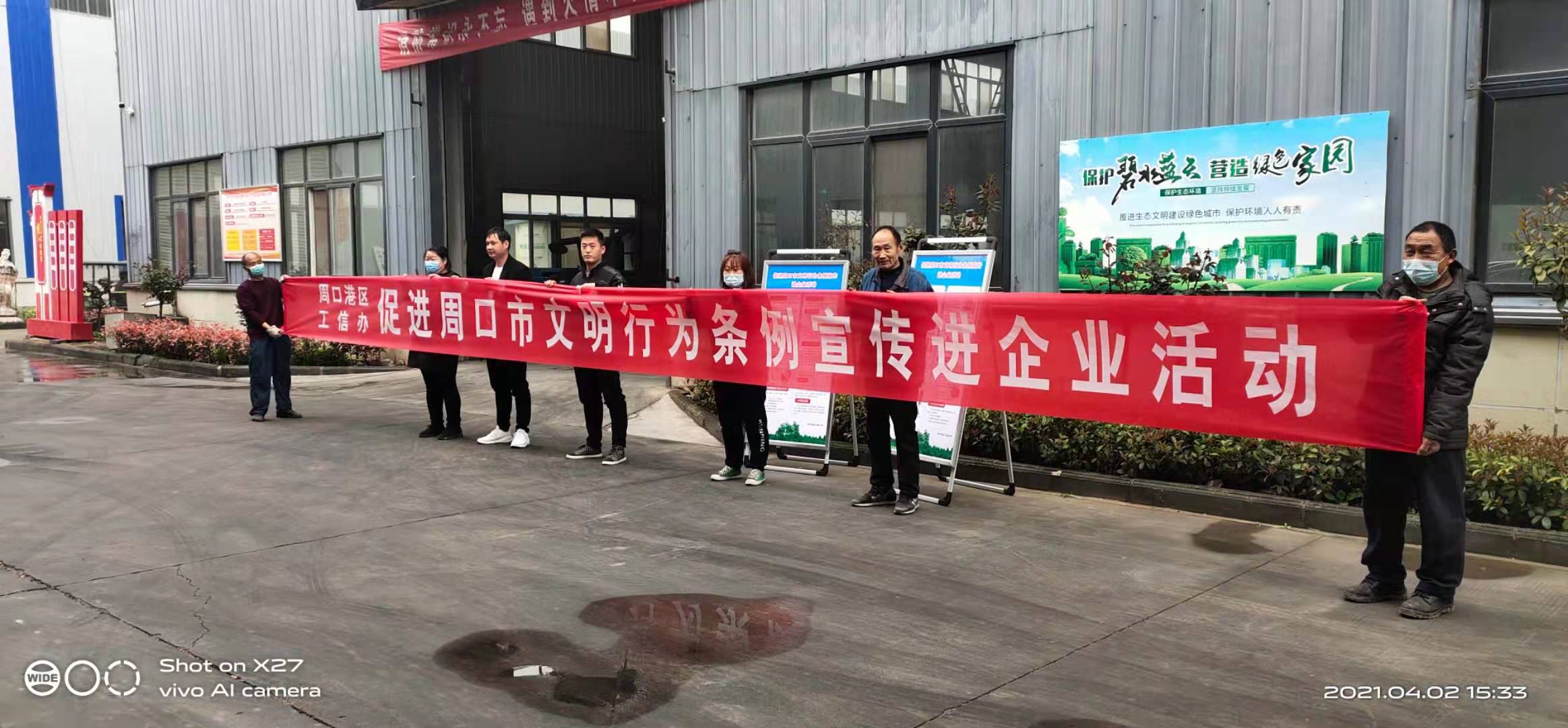 為迅速掀起學(xué)習宣傳《文明行為促進條例》熱潮,不斷提升廣大企業(yè)員工文明法治意識、社會責任意識,運用法律法規(guī)規(guī)范促進文明行為,4月2日下午,周口港區(qū)工信辦組織人員開展宣傳《周口市文明行為促進條例》進企業(yè)的活動。