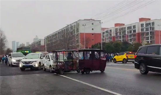 文昌路小學附近三輪車橫穿馬路造成交通堵塞