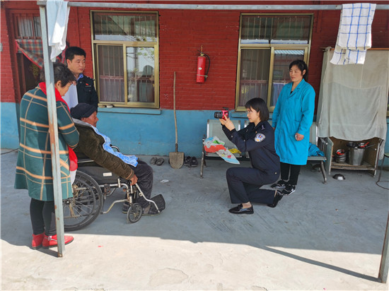 在大王樓敬老院康養(yǎng)的趙中原老人,已經(jīng)八旬有余,因常年臥床,行動不便一直未能辦理二代居民身份證。三月下旬,其突發(fā)疾病,急需辦理醫(yī)保手續(xù)入院治療。但由于沒有身份證無法辦理相關(guān)手續(xù),這可急壞了敬老院負責人和工作人員。按正常程序,需要帶老人去派出所戶籍室采集人像及指紋信息,由于老人年邁又行動不便,他們選擇向沈丘縣公安局西關(guān)派出所求助。接到電話后,西關(guān)派出所戶籍民警王欠積極與社區(qū)民警高坤朋一道前往敬老院。為了采集到合格信息,王欠與敬老院工作人員固定好老人坐姿,自己單膝下跪,為趙中原老人拍照。由于老人年邁且長期臥床,坐姿和面部表情不好調(diào)整,王欠反復(fù)十余次單膝跪地,才采集到合格的人像信息。