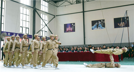 4月12日下午,項城市雜技藝術(shù)學校通過運用雜技藝術(shù)編創(chuàng)的紅色雜技劇,在該校首次面向社會展演,以慶祝建黨100周年。同學們穿著解放軍服裝,模擬渡江、登城、翻越城墻、槍林彈雨戰(zhàn)斗等場景,演繹了一場紅色文化教育的情景劇,讓人耳目一新,受到大家一致好評。周口日報·周道客戶端記者 梁照曾 攝