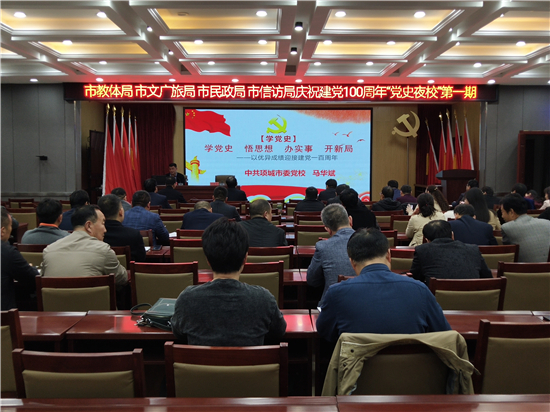 4月13日晚7:00至8:30,項城市教育體育局黨史夜校學習班第一期在該局會議室正式開班。來自項城市教體局、文廣新局、民政局、信訪局的近200名黨員參加了此次培訓。