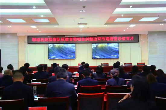 為進一步推進檢察隊伍教育整頓工作,做好隊伍教育整頓查糾整改階段思想發(fā)動工作,增強干警的廉潔自律意識,筑牢拒腐防變的思想防線,4月13日晚上,鄲城縣人民檢察院組織全體干警觀看警示教育片《“保護傘”自身難保,“坐地虎”坐進監(jiān)牢》。