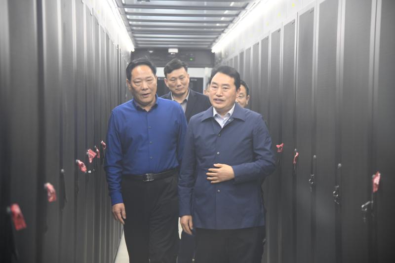 圖為:開封日報報業(yè)集團(tuán)一行在參觀周口報業(yè)融媒體中心機(jī)房