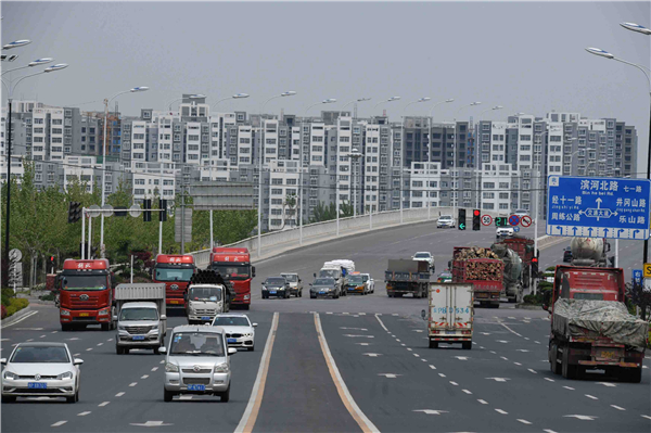 武盛大道南段沙潁河大橋邊高樓林立、車(chē)水馬龍充滿(mǎn)大城市氣息