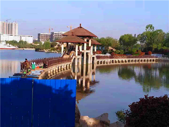 近日,位于文昌大道的周口公園啟動(dòng)了對(duì)水上棧道的維修。周口公園的水上棧道和亭榭是一道美麗的風(fēng)景,成為人們游園打卡之地,然而因建造時(shí)用的是木材,歷經(jīng)風(fēng)雨,朽壞嚴(yán)重,存在安全隱患,周口公園方面于去年將之封閉。記者在現(xiàn)場(chǎng)看到,工人已經(jīng)將木質(zhì)扶欄、道上木板拆除,正在安裝鐵護(hù)欄。鐵護(hù)欄油漆成棕褐色,依然保持原棧道的風(fēng)格和色調(diào)。②7