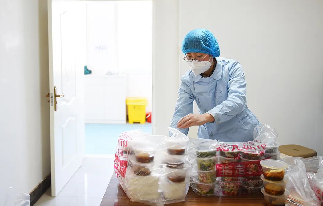 “韓某對銀耳過敏,醫(yī)院內(nèi)餐部做的巧碗里有銀耳,絕對不能給她吃,要另外做一份;于某蛋白低,每餐要加一盒牛奶一個雞蛋,他不喜歡吃雞蛋,勸著他也得吃;有一個血糖高,早餐兩個素包子,不能帶粉條,粉條含淀粉,會增加血糖……”說起這些病人的情況,她了如指掌,一邊說著,一邊熟練地將幾筐飯菜分類打包,每一份都用食品袋包好,上面都寫上名字,再分別送去。