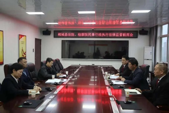 為進(jìn)一步推動(dòng)教育整頓工作,認(rèn)真落實(shí)省院、市院關(guān)于開展民事行政執(zhí)行法律監(jiān)督專項(xiàng)活動(dòng)的要求,推動(dòng)民事、行政檢察工作順利開展,解決人民群眾反應(yīng)強(qiáng)烈的執(zhí)行難、執(zhí)行亂等問題,4月20日下午,鄲城縣檢察院黨組書記、代檢察長(zhǎng)陸智明和縣院黨組成員、副檢察長(zhǎng)馬立強(qiáng)以及第四檢察部員額檢察官李平會(huì)同縣法院有關(guān)領(lǐng)導(dǎo)召開了民事行政執(zhí)行法律監(jiān)督聯(lián)席會(huì)??h法院黨組書記、院長(zhǎng)王洪彬應(yīng)邀出席會(huì)議。