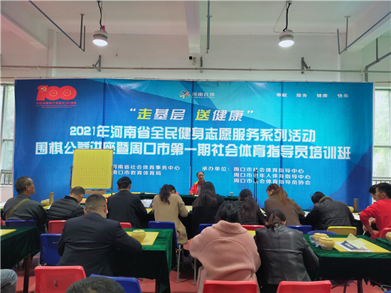 此次培訓(xùn)班由河南省社會(huì)體育事務(wù)中心、周口市教育體育局主辦,周口市社會(huì)體育指導(dǎo)中心、周口市老年人體育指導(dǎo)中心、周口市社會(huì)體育指導(dǎo)員協(xié)會(huì)承辦,采取理論講座與實(shí)操訓(xùn)練相結(jié)合的方式進(jìn)行,培訓(xùn)的項(xiàng)目為圍棋、瑜伽和廣場舞。