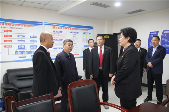 4月30日下午,市委常委、政法委書記路云到沈丘縣法院就隊伍教育整頓工作進行專題調(diào)研指導。沈丘縣委書記皇甫立新,縣委常委、政法委書記段然陪同調(diào)研。