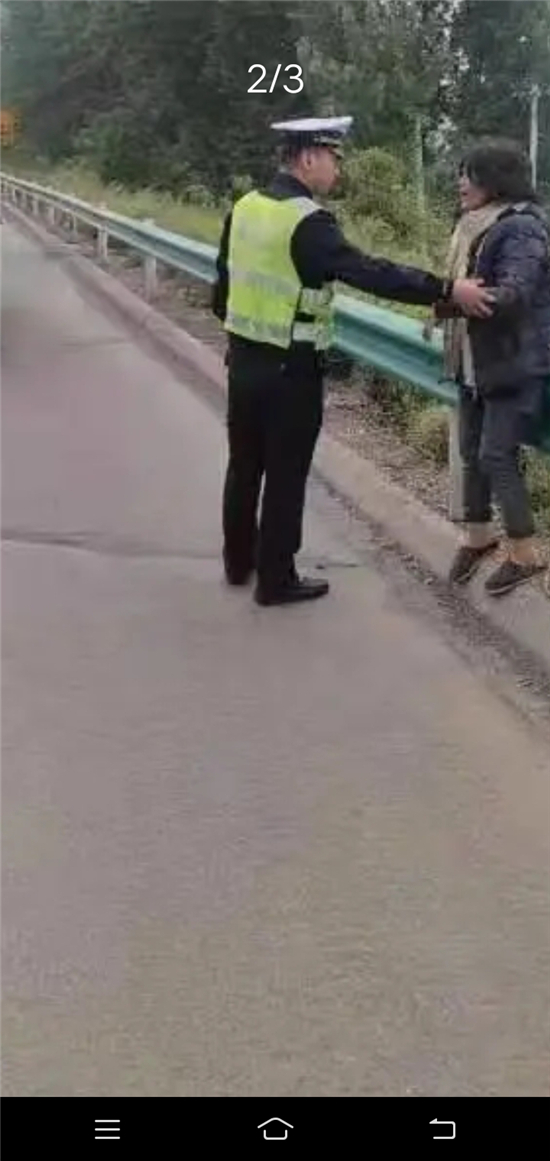 警情緊急!周口高速交警指揮中心立即指派距離事發(fā)地點(diǎn)最近的巡邏民警趕往現(xiàn)場(chǎng)。5分鐘后,及時(shí)趕到現(xiàn)場(chǎng)的民警發(fā)現(xiàn),該女子在高速公路上不顧急駛而過(guò)的車(chē)輛來(lái)回跑跳,手舞足蹈。民警一邊開(kāi)啟警笛,警示過(guò)往車(chē)輛,一邊上前將該女子強(qiáng)行拉到應(yīng)急車(chē)道。在與該女子溝通過(guò)程中,民警發(fā)現(xiàn)其疑似智障人員。就在此時(shí),碰巧從高速公路下經(jīng)過(guò)的一名村民認(rèn)出該女子,表示該女子與其同村。溝通后,民警將該女子送下高速公路,委托村民將她安全送回家中。