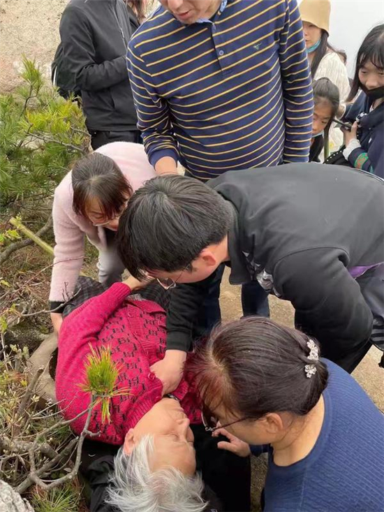 大河網(wǎng)訊 5月3日13點(diǎn)35分左右,周口市兒童醫(yī)院醫(yī)生趙一品在游覽洛陽白云山景區(qū)的途中,遇到一位突發(fā)疾病暈倒的老太太。聽到家屬呼救,趙一品迅速來到暈倒的老太太身邊,協(xié)助家屬清理了老太太口中的食物殘?jiān)?,讓病人平躺等待救援?/span>