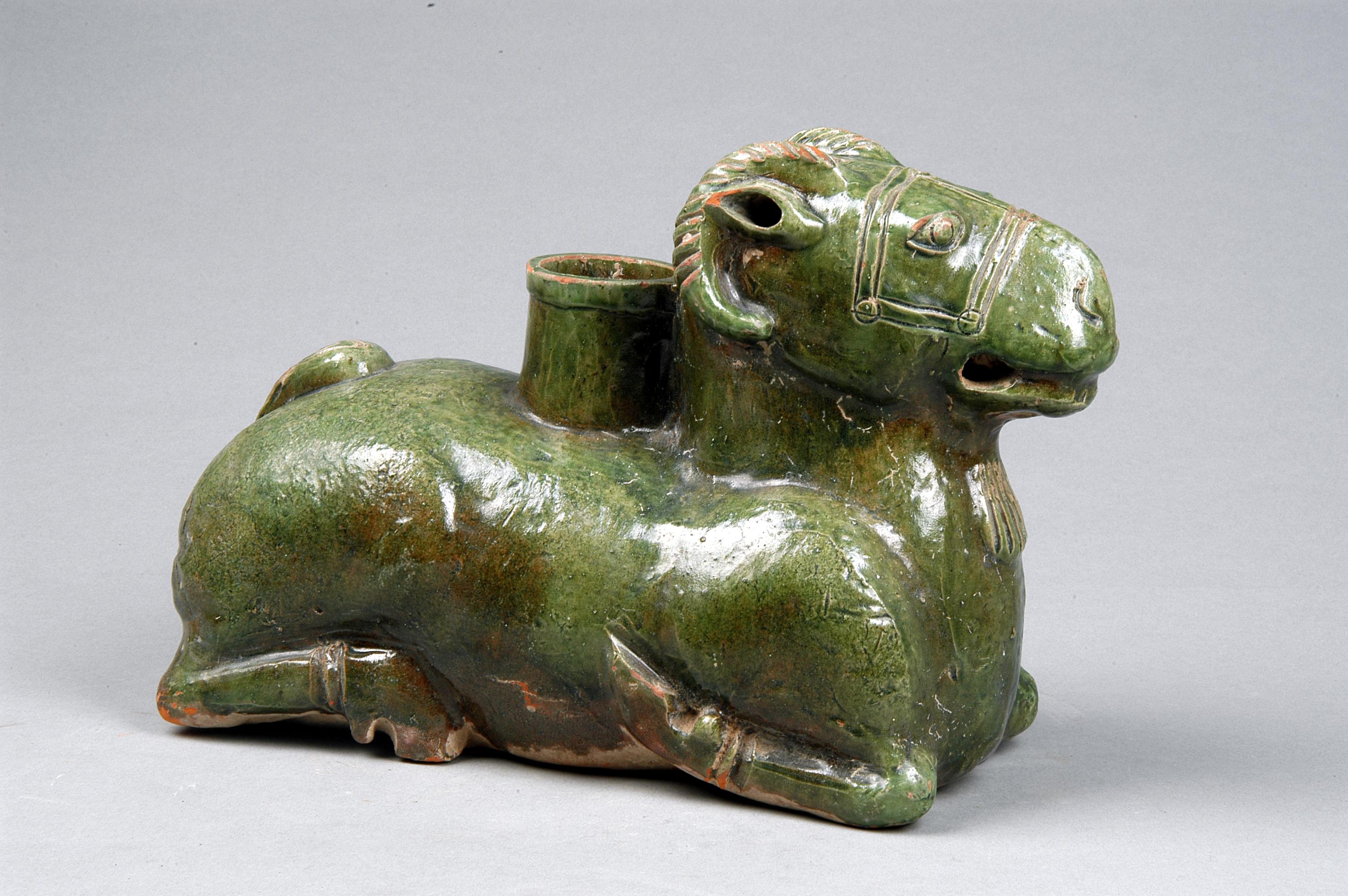 我國(guó)是世界上較早馴養(yǎng)羊的國(guó)度之一,羊還被古人視為美好的象征,在中國(guó)漢字文化中有所謂“羊大為美”。東漢許慎的《說(shuō)文解字》中說(shuō),“羊”字是“祥”字的代表,在眾多古器物的銘文中,“吉祥”也多作“吉羊”。因此,古人常把羊的造型藝術(shù)化,制成器皿、物品,取其吉祥如意的意思。最早的陶瓷羊始于新石器時(shí)代的陶塑,到商周時(shí)期,羊的造型已經(jīng)大量用在陶、骨、玉、青銅等器皿上。陶瓷器中以羊?yàn)樵煨偷钠魑镌趹?zhàn)漢時(shí)期(指戰(zhàn)國(guó)到漢代)最為盛行,可能與羊?yàn)槿磺規(guī)в胸?cái)富之意有關(guān)。