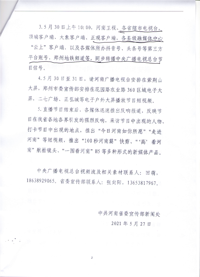 中央廣播電視總臺《今日中國》大型直播特別節(jié)目“河南篇”宣傳報道安排