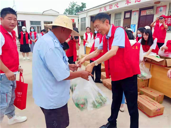 當(dāng)日7時(shí)許,北斗達(dá)教育集團(tuán)100多名志愿者帶上采購好的速凍水餃和粽子直接從市區(qū)來到了杜崗村。下車后,志愿者不顧天氣炎熱,爭(zhēng)先恐后地把這些速凍水餃和粽子一份份分裝好,等待著向老人分發(fā)。