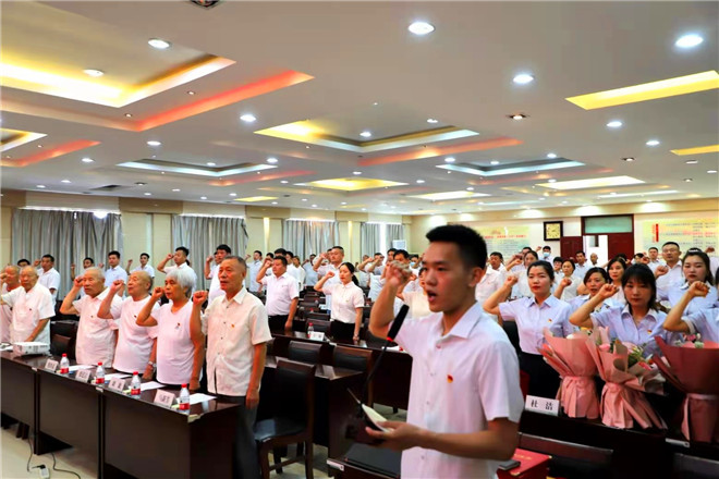 大會(huì)在莊嚴(yán)的國(guó)歌聲中拉開序幕。隨后,全體黨員以滿腔的熱情,面向黨旗,重溫入黨誓詞。黨旗熠熠生輝,誓言鏗鏘有力,展現(xiàn)了新時(shí)代電力人為黨的事業(yè)奮斗終生的信心和決心。