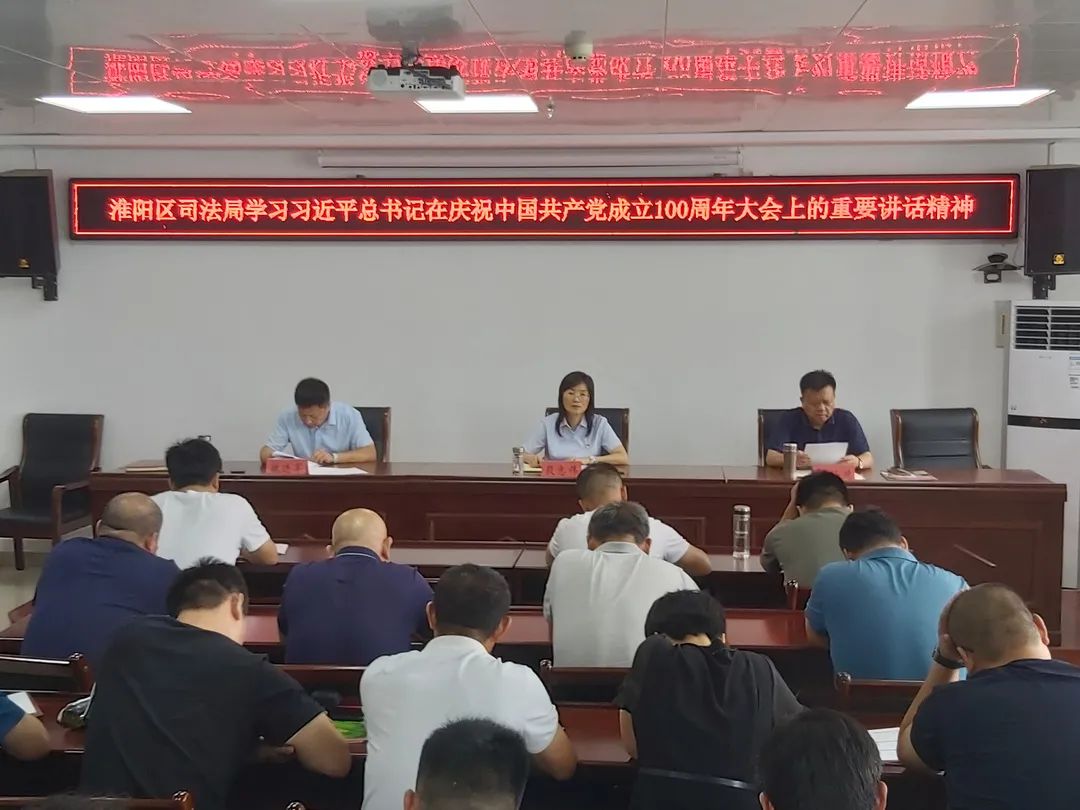 7月12日,淮陽區(qū)司法局召開全體會議,學(xué)習(xí)貫徹習(xí)近平總書記在慶祝中國共產(chǎn)黨成立100周年大會上的重要講話精神,研究部署貫徹落實(shí)工作。