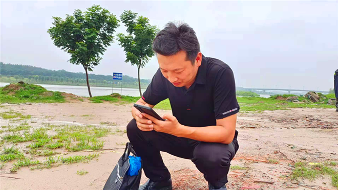 記者張猛在西華縣賈魯河閆莊大閘采訪