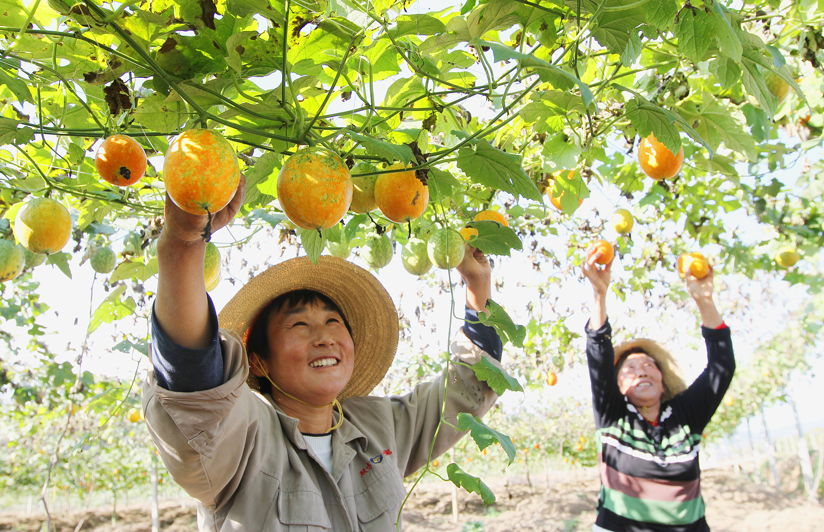 圖1:房縣軍店鎮(zhèn)中村村農(nóng)民在中藥材產(chǎn)業(yè)園采收吊瓜。 圖片由十堰日報(bào)社提供