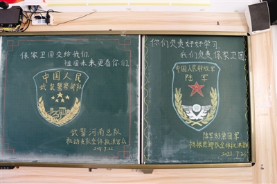 當抗洪官兵結(jié)束任務離開時,他們分別在學校留下了“最美黑板報”。