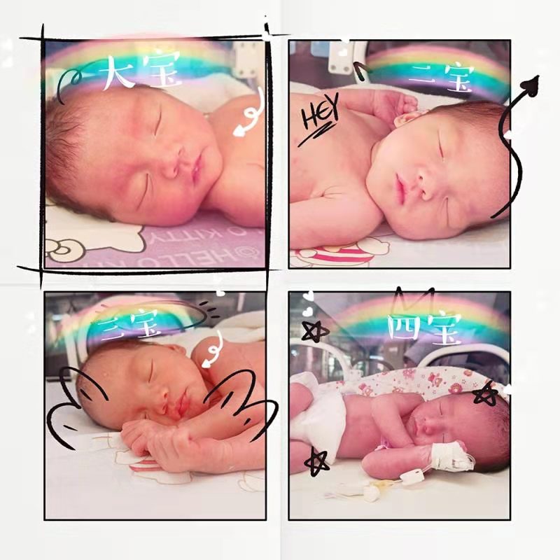 7月25日1時02分、03分、03分、04分隨著一陣陣啼哭聲,產(chǎn)婦經(jīng)剖宮產(chǎn)“三鳳一龍”四胞胎相繼出生,體重分別為2180g、2120g、2030g、1520g,全身紅潤,哭聲響亮,被安全送入危重新生兒救治中心監(jiān)護(hù)室進(jìn)行重點(diǎn)監(jiān)護(hù)。