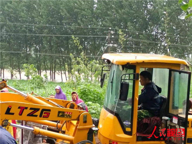 雨越下越大,衛(wèi)河水位持續(xù)上漲,永康段因前期澆地破開的口由于水流量過大,出現(xiàn)缺口,群眾的生命財產(chǎn)安全受到了威脅,河上巡邏的村干部發(fā)現(xiàn)衛(wèi)河一處排污口不斷往外涌水,立即報告給張乾書記,此時,張乾家中剛做好午飯,張書記把碗往桌上一放,還沒來得及吃一口,穿著雨衣就沖出門外,趕到現(xiàn)場,看到情況十分緊急,千鈞一發(fā)之際,他不顧危險,大喊一聲“我來!大家把沙袋遞給我!”縱身跳入湍流的河中,只見他佝僂起身體,降低重心,以防被急流沖倒,一邊等著岸上接力過來的沙袋,在他抬頭等著接沙袋的時候,雨水打得他的眼睛都睜不開,他瞇著眼睛將一袋袋沙袋壘到衛(wèi)河封堵口,成功封堵缺口。經(jīng)過一夜的努力,和此時,已經(jīng)夜里四點鐘,張書記全身濕透,雙腿被冷水泡得瑟瑟發(fā)抖,剛被人拉上岸,又有人來說共產(chǎn)主義渠永康段又出現(xiàn)決堤。張乾書記二話沒說,又號召村上幾十人,立即趕到現(xiàn)場,指導(dǎo)防汛人員進行搶險?!跋韧跍?,趕緊把水排掉,如果大堤經(jīng)過長時間的浸泡,極容易形成塌方?!弊屑?xì)觀察險情后,張乾趕緊吩咐道。為了填大堤,他親自開著鏟車填放沙袋,但是由于大堤被水沖垮,已經(jīng)承受不住鏟車的重量,此時,他反應(yīng)迅速,趕緊倒車返回岸上,幸好沒有掉入河中,隨即又發(fā)動村內(nèi)群眾開來自家的兩輪、三輪車?yán)^續(xù)王河堤上面運送沙袋,但是由于水流量太大,杯水車薪,又聯(lián)系鎮(zhèn)上的領(lǐng)導(dǎo),協(xié)調(diào)了周邊村莊的黨員群眾一起,經(jīng)過連夜奮戰(zhàn),終于將決堤處堵住。