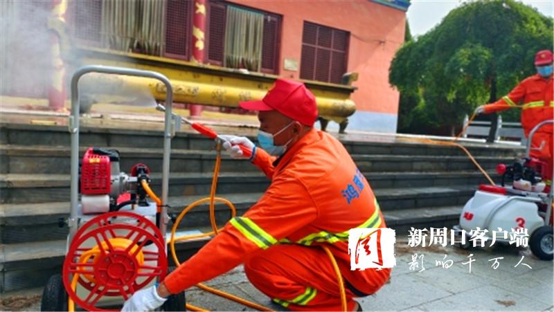 在女媧景區(qū),只見老關(guān)和其他3名消殺人員發(fā)動機器、拉出噴管、手提噴槍,一邊前進,一邊揮動,白色水霧隨之噴涌而出,所到之處細菌病毒“無處遁形”。大家齊心協(xié)力,很快就把景區(qū)的角角落落消殺個遍。