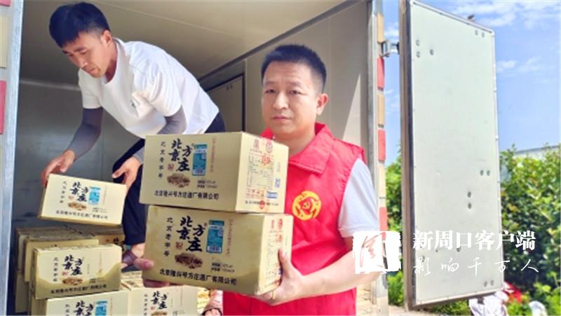 7月30日11時30分,在西華縣新的社會階層人士聯(lián)誼會牽頭下,北京方莊酒周口總代理負責人彭建立和員工一起載著價值6多萬元的酒精、蚊香等物品相繼來到西華縣黃橋鄉(xiāng)、遲營鄉(xiāng)、田口鄉(xiāng)等多個地方,親自將群眾最亟需的消毒、驅(qū)蟲用品送到他們手中。