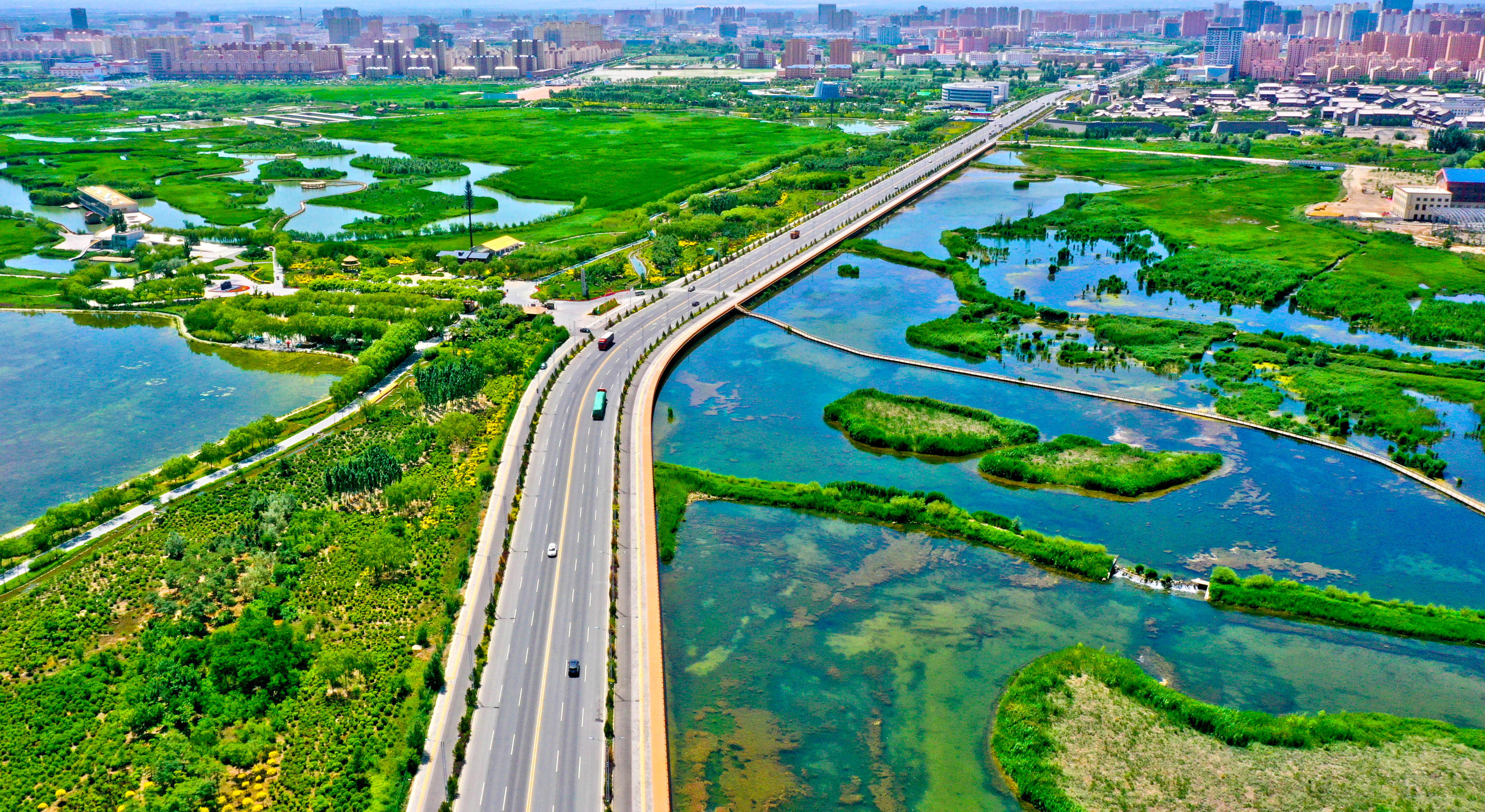 圖2:張掖市甘州區(qū)濱河新區(qū)。 張掖日報(bào)社 王將 攝