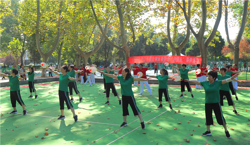 9月30日上午,市柔力球運(yùn)動(dòng)協(xié)會(huì)在周口人民公園內(nèi)舉行迎國慶柔力球展演活動(dòng),來自人民公園雙拍雙球柔力球隊(duì)、示范區(qū)柔力球隊(duì)、中心區(qū)柔力球隊(duì)、人民公園柔力球隊(duì)和競技柔力球隊(duì)的柔力球愛好者揮動(dòng)球拍,以良好的精神風(fēng)貌展示了柔力球規(guī)定套路和對(duì)抗訓(xùn)練動(dòng)作等,為國慶節(jié)獻(xiàn)禮。