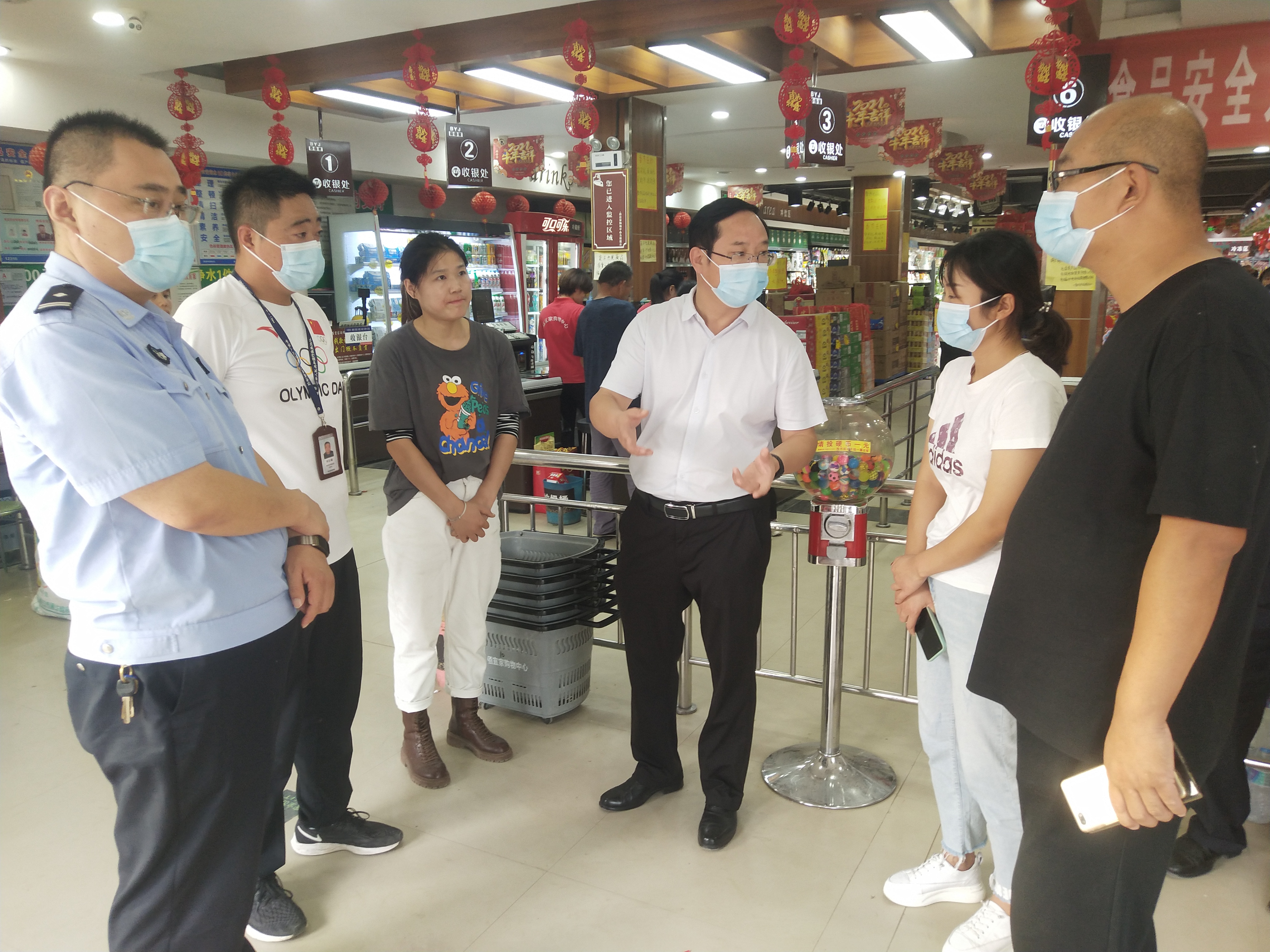 “你們這個(gè)超市經(jīng)營面積多少?配備多少消防栓、滅火器?有幾個(gè)逃生通道?員工是否熟知消防安全常識(shí)?油炸熟食肉類食品是如何保障質(zhì)量的……”“咱樓上樓下營業(yè)面積共2000平方米,配備20個(gè)消防栓、60個(gè)滅火器,有2個(gè)逃生通道,每周都對(duì)員工進(jìn)行消防安全演練,每一批食品都有檢測(cè)報(bào)告……”10月1日下午,商水縣平店鄉(xiāng)黨委書記段文海、鄉(xiāng)長(zhǎng)位望喜、主管安全生產(chǎn)的副鄉(xiāng)長(zhǎng)劉春苗帶隊(duì),組織鄉(xiāng)派出所、市場(chǎng)監(jiān)督所相關(guān)人員到安全生產(chǎn)重點(diǎn)場(chǎng)所“萬果園超市90號(hào)”連鎖店開展國慶節(jié)安全生產(chǎn)暗訪檢查,超市負(fù)責(zé)人呂四偉詳細(xì)介紹了安全經(jīng)營情況。
