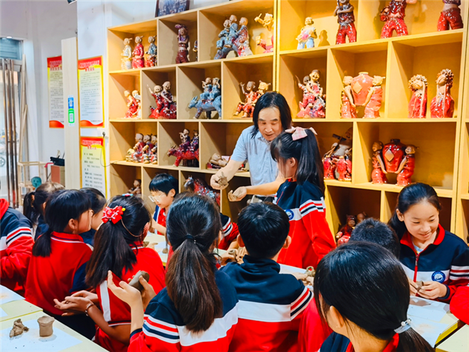 中小學(xué)生國慶節(jié)弘揚(yáng)非遺文化 學(xué)習(xí)張振福泥塑鈞瓷技法