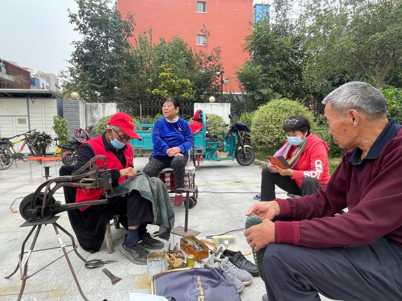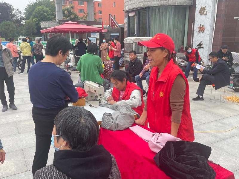 10月14日,在川匯區(qū)文昌大道的中原社區(qū)A區(qū)大門(mén)口,數(shù)十名身穿紅馬甲的志愿者在忙著幫社區(qū)老年人截褲腳、剪頭發(fā)、補(bǔ)鞋子。志愿者們深入社區(qū),為老年人服務(wù)。此外,他們還在蓮花路、太昊路、文明路、交通路街頭值勤,助力文明周口建設(shè)。①5