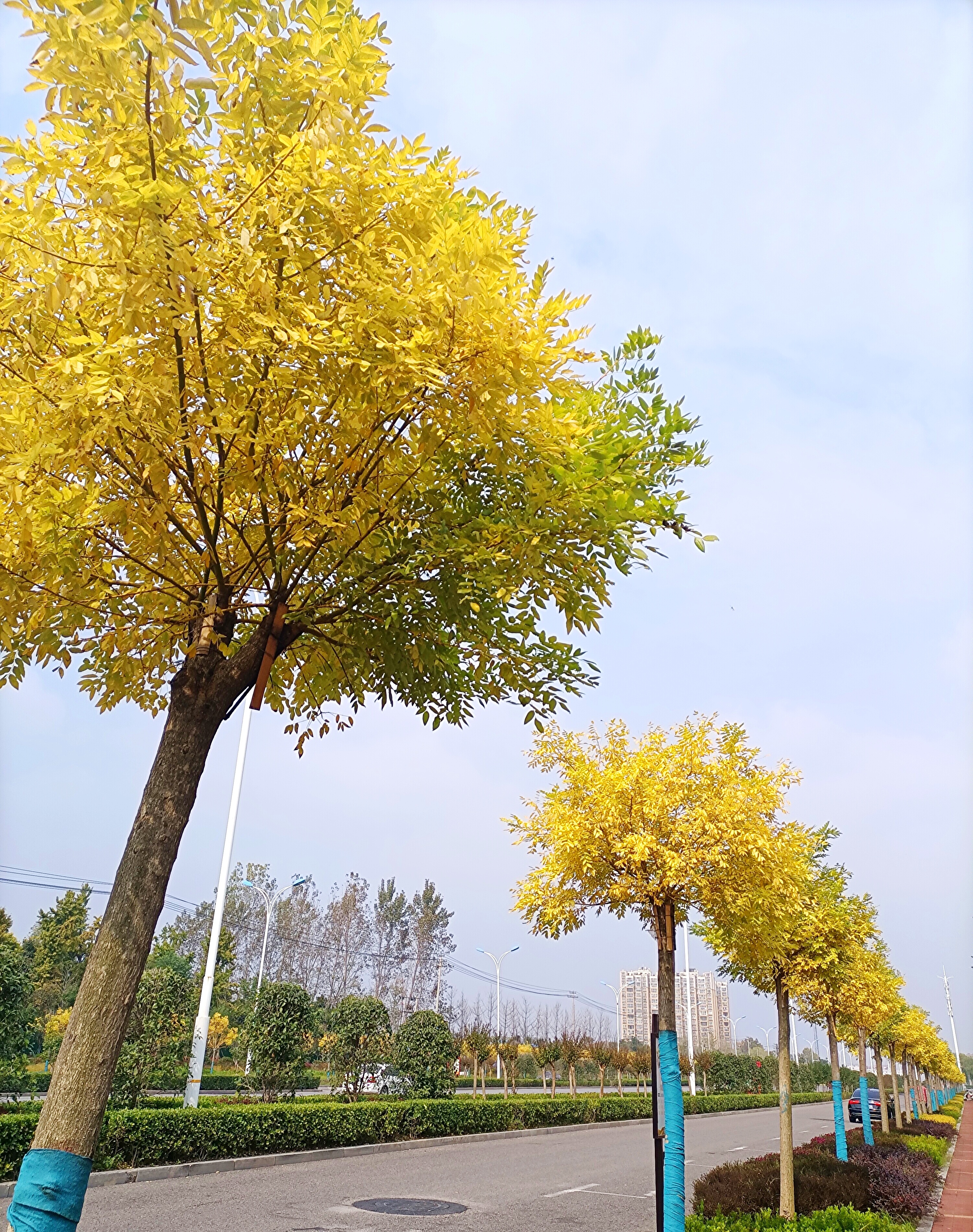 天氣漸涼,綠葉漸黃。近日,我市中心城區(qū)各種樹木漸漸披上了金黃色的“秋日盛裝”,比如道路兩旁的金絲槐樹、周口公園的銀杏樹等。漸漸變黃的葉子呈現(xiàn)出一種別樣的美感。