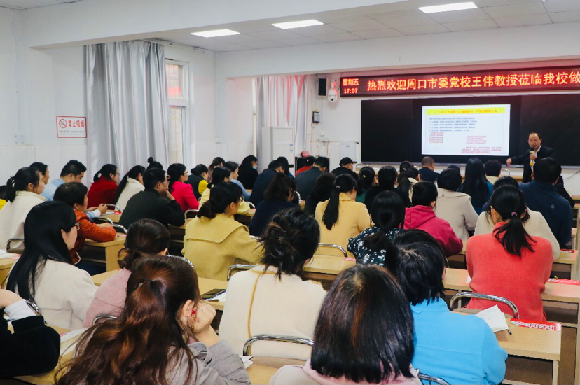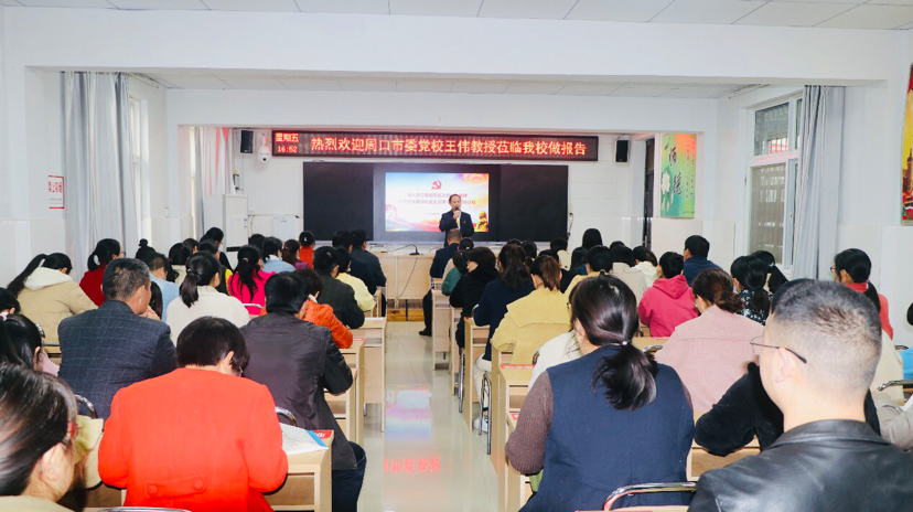 宣講會上,市委黨校宣講團講師王偉以“深入學習貫徹市五次黨代會精神、開啟全面建設社會主義現(xiàn)代化周口新征程”為主題,從充分認識市五次黨代會的重大意義、準確把握市五次黨代會的精神要義、全面落實市五次黨代會的目標任務三方面,詳盡解讀了市五次黨代會主旨報告的精神實質和豐富內涵。整場報告脈絡清晰、論述深刻、內容豐富,既有深入淺出的理論闡述,又有結合我市發(fā)展的實例分析,更有教育實踐層面的對策思考,為該校教職工深入、完整、系統(tǒng)地領會市五次黨代會精神,有力推進貫徹落實黨代會精神提供了一把“金鑰匙”。