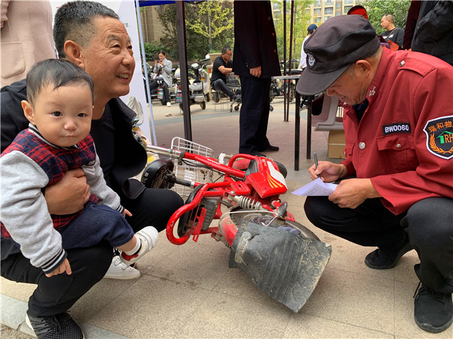 社區(qū)工作人員深入小區(qū)為居民電動(dòng)車上牌
