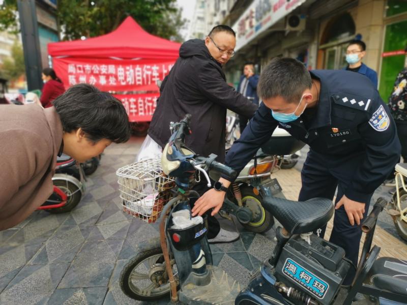 民警查看電動自行車車架號