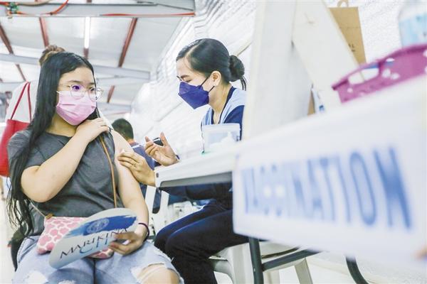 11月29日,民眾在菲律賓馬里基納的一個體育中心接種新冠疫苗。