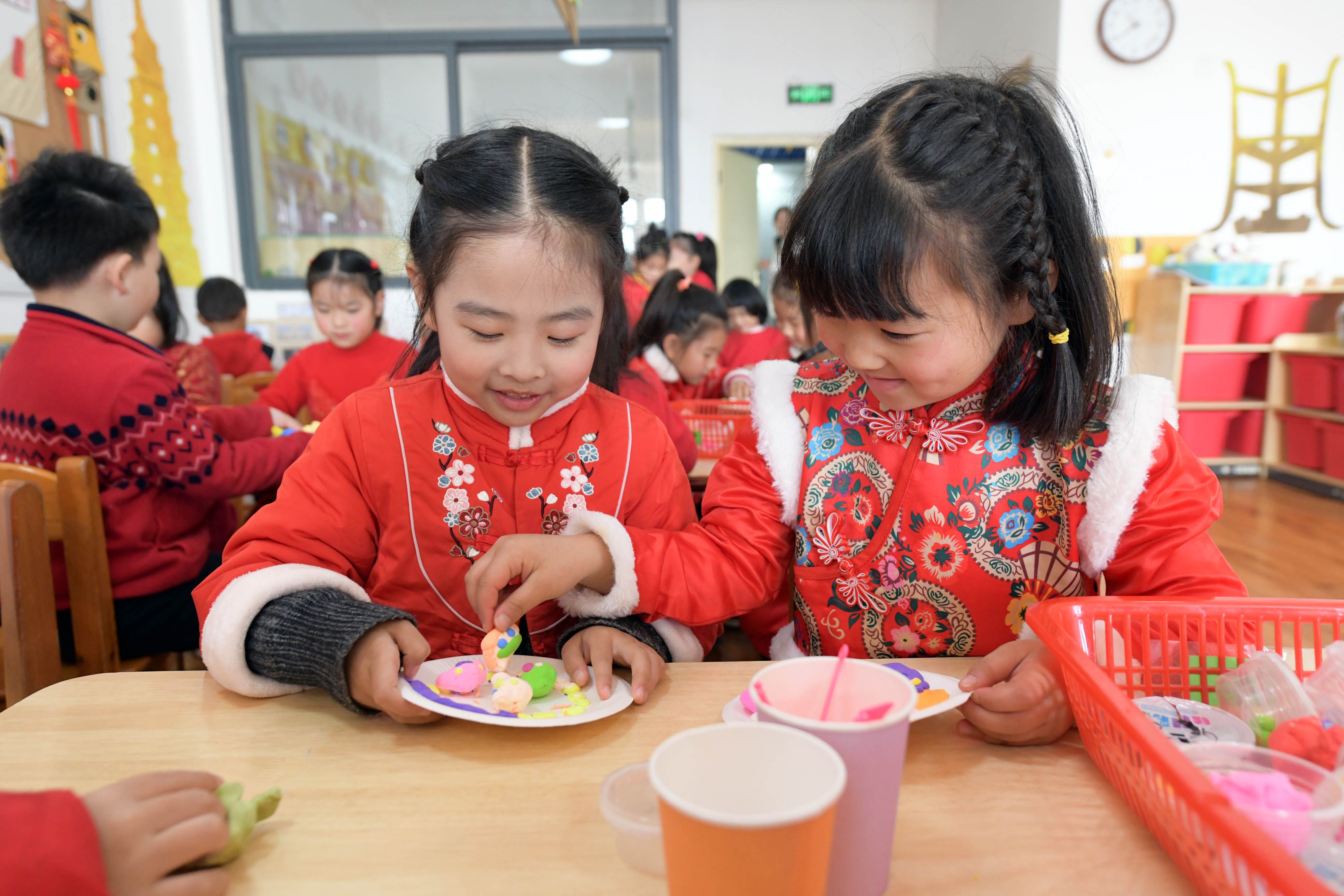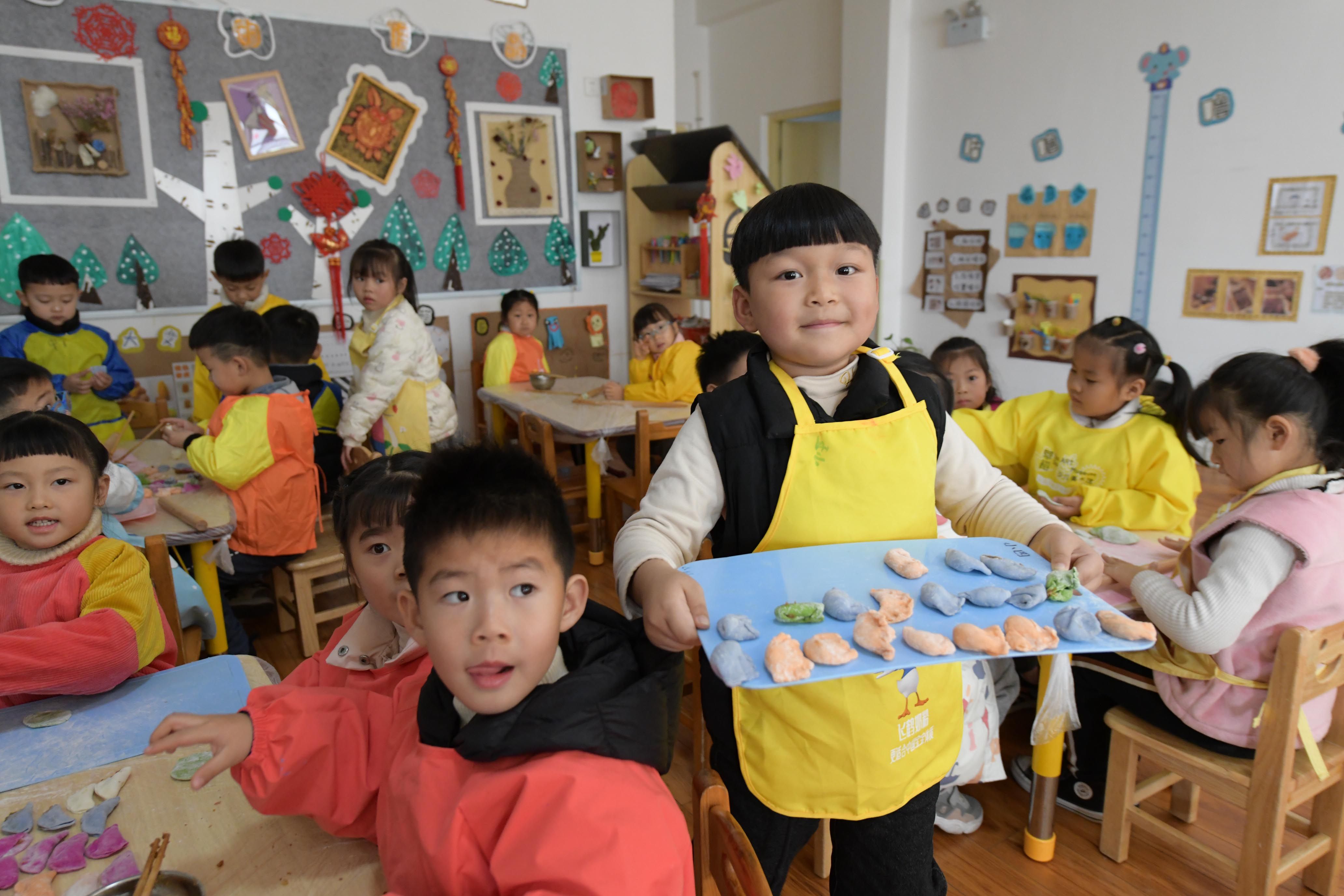 小朋友用五彩餃子迎冬至。