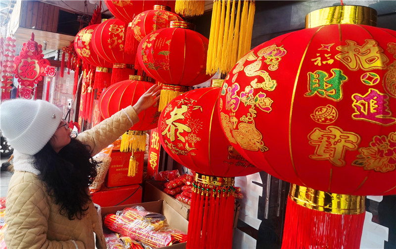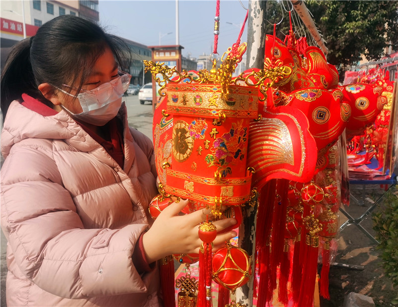 1月27日,市民在認(rèn)真挑選著新年的裝飾品。春節(jié)臨近,虎年生肖飾品、對(duì)聯(lián)、中國結(jié)、福字、大紅燈籠等“紅色年貨”火了年貨市場。據(jù)了解,各種寓意祥和的春聯(lián)、以老虎為主題的各種窗花、各種飾品最受市民歡迎。③10