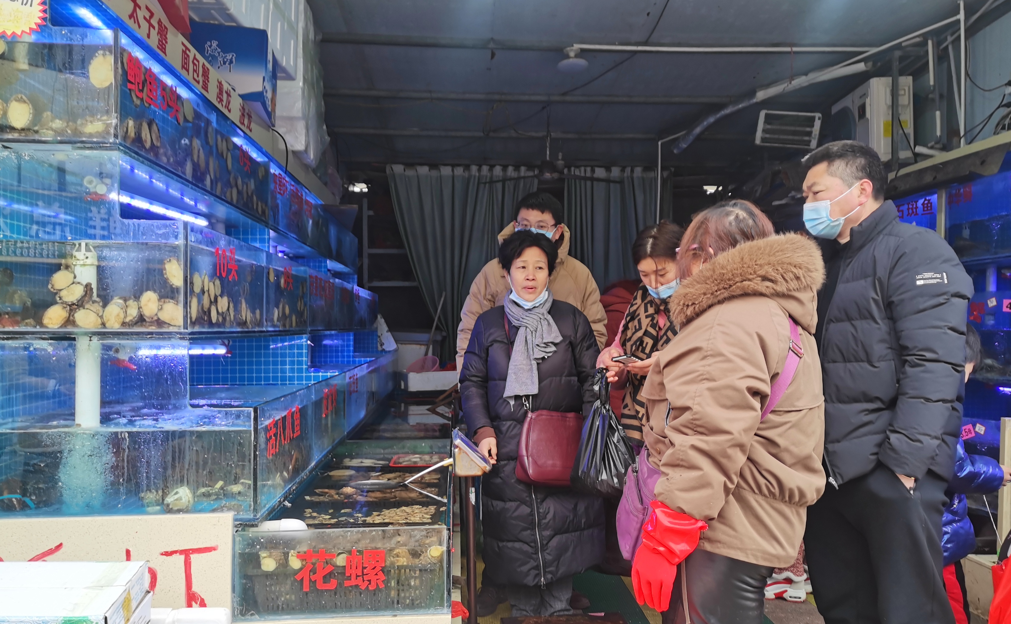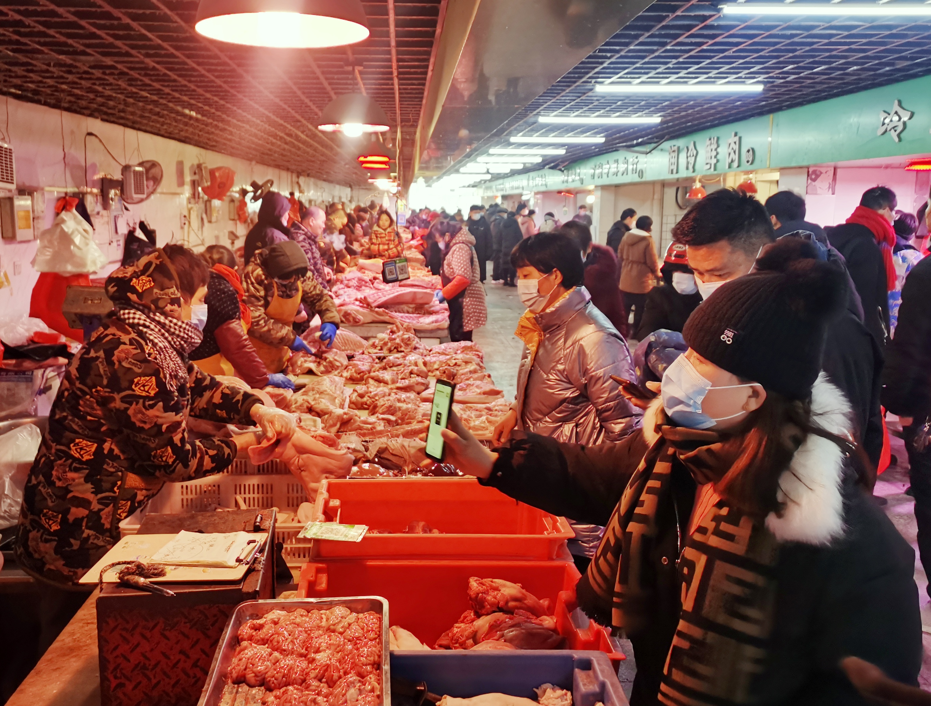 1月27日,黃淮大市場里人來人往,前來選購的市民絡(luò)繹不絕。 春節(jié)臨近,市民置辦年貨的熱情越來越高,黃淮大市場內(nèi)年味十足,蔬菜、水產(chǎn)、熟食、副食品等分區(qū)鮮明,各種商品供應(yīng)充足,呈現(xiàn)購銷兩旺態(tài)勢。②11