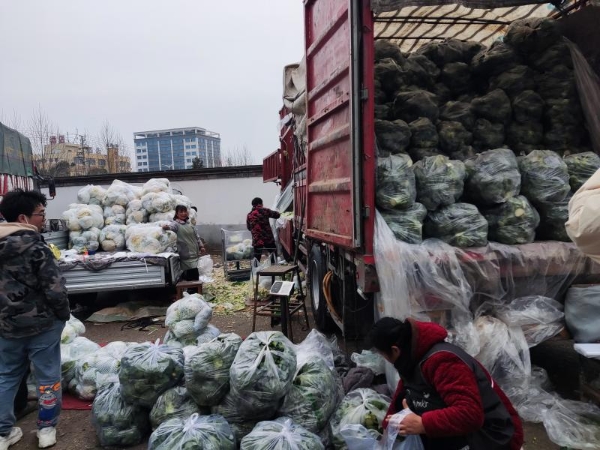 在市場入口,一輛輛載著各類商品的大貨車正排著隊(duì)往里進(jìn),測溫、驗(yàn)證、登記、抽檢,進(jìn)入市場后,幾輛三輪車迅速圍上,開始卸貨,一切都有條不紊?!斑@一車大蔥是市里十幾家飯店要的。”張師傅邊卸貨邊說,“過年有不少大飯店正常營業(yè),現(xiàn)在就開始備貨了。”當(dāng)被問及現(xiàn)在和平常有什么不一樣時(shí),張師傅略顯疲憊的臉上露出了笑容,“肯定不一樣,平常兩天來一次,現(xiàn)在一天一次,一年到頭就現(xiàn)在最忙,辛苦幾天,掙錢過個(gè)好年”。